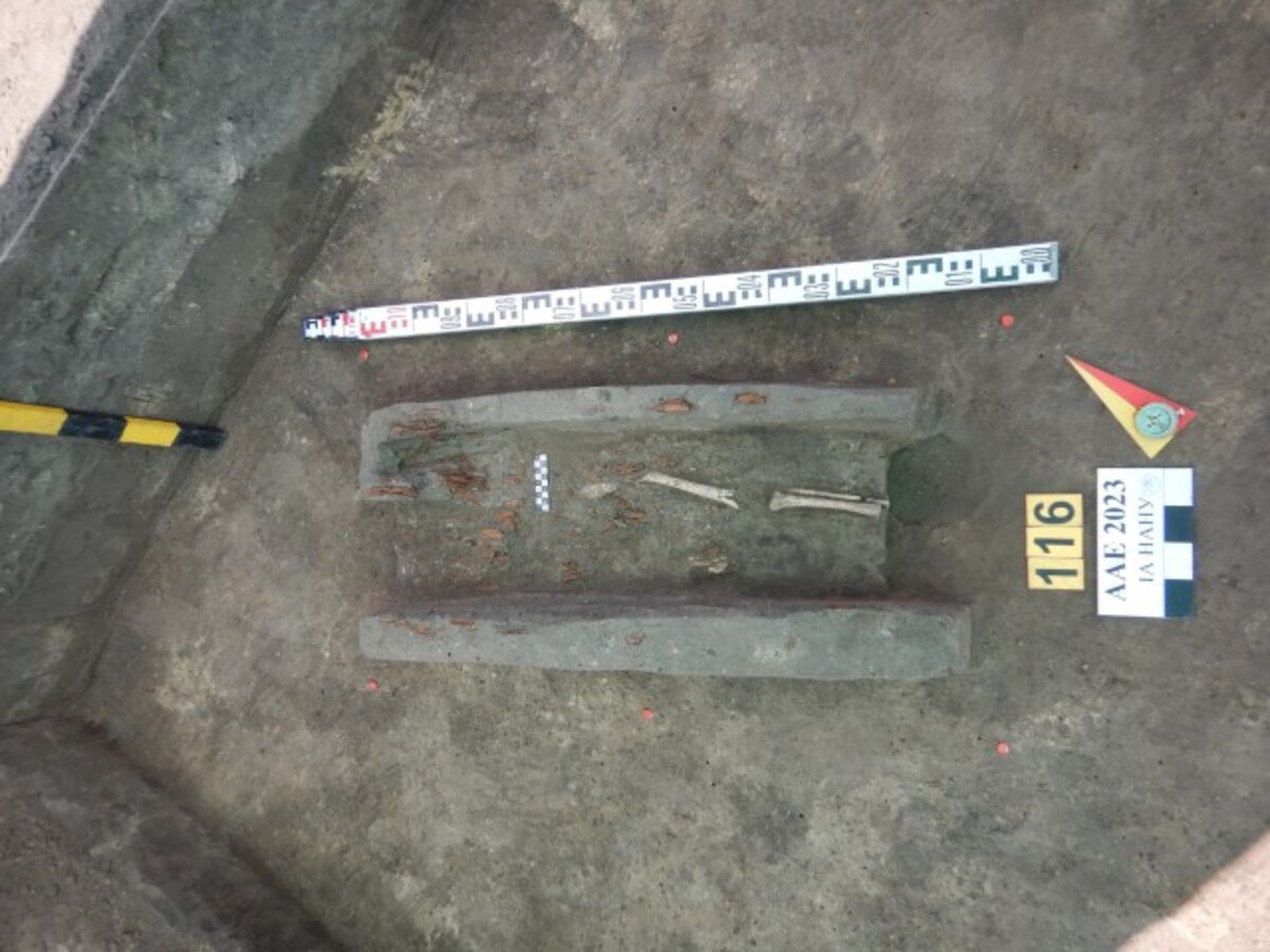 Зокрема, повідомляється про залишки кількох гробовищ - п'ятьох комплексів. Це були фрагменти трухлявої деревини. У трьох з них були залізні цвяхи, забиті в кришки трун.