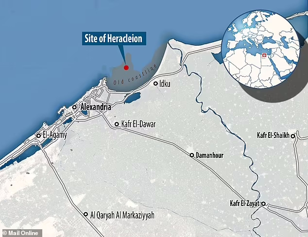 Залишки портового міста зараз розташовані під водою, приблизно за 7 км від нинішнього узбережжя Єгипту.