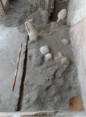 Також було виявлено предмети побуту, такі як амфори, що використовувалися для зберігання гаруму, ферментованого рибного соусу, та набір бронзового посуду, зокрема ополоник, глечик з однією ручкою, вазу у формі кошика та чашку у формі мушлі. Ці предмети повсякденного вжитку свідчать про життя, яке було раптово перервано виверженням.