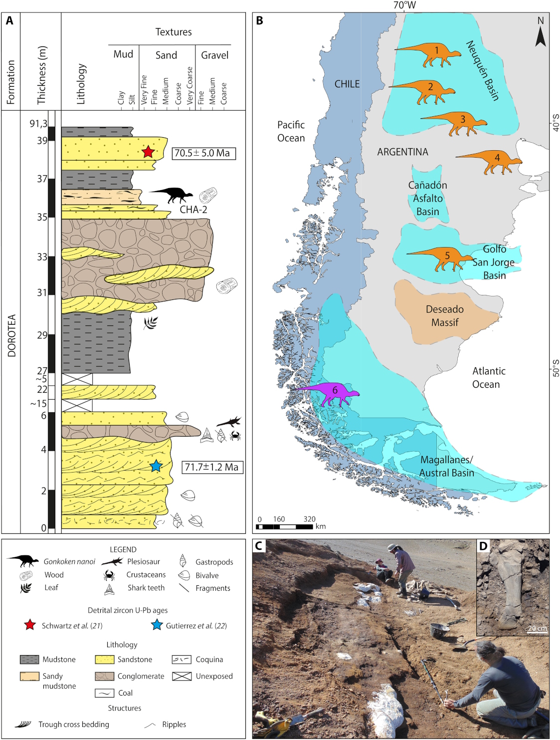Gonkoken nanoi довжиною до чотирьох метрів та вагою в тонну жив 72 мільйони років тому на крайньому півдні сучасної чилійської Патагонії.