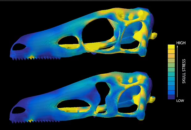 Щоб вивчити вплив форми очної ямки на структуру і функцію черепа, дослідники порівняли сили, яким піддавалася теоретична модель черепа рептилії з п'ятьма різними формами очної ямки під час моделювання укусів. Виявили, що череп з круглою очницею був більш схильний до високих навантажень під час укусу. Якщо ж їх замінити на інші форми очних ямок, напруга значно зменшувалася. Експерти припустили, що це дозволило вищим хижакам, включаючи тиранозавра, розвинути велику силу укусу без шкоди для стабільності черепа. Дослідження також показало, що у більшості травоїдних видів та молодих великих динозаврів збереглася кругла очниця.