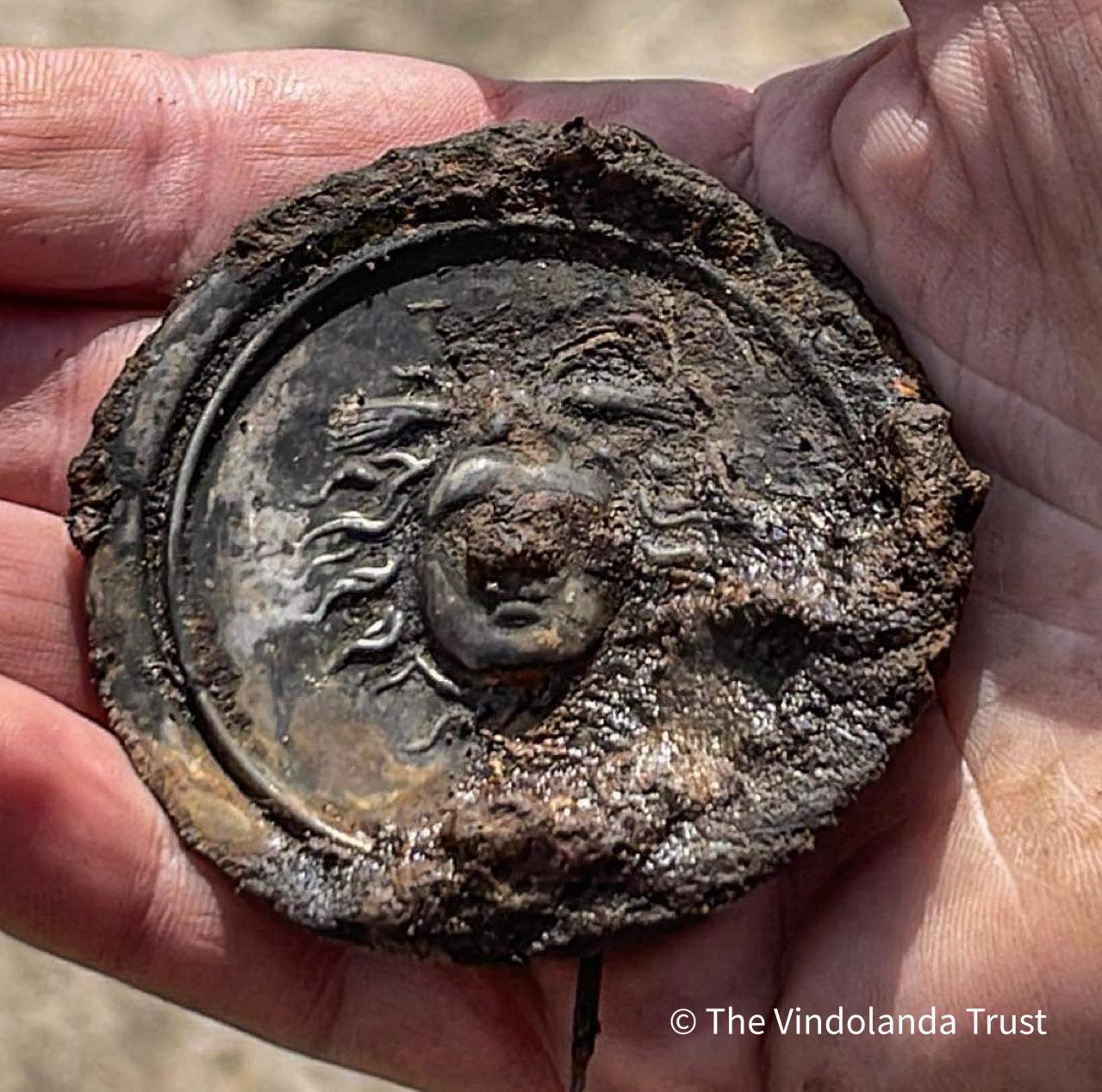 Срібна військова медаль майже 1800-річної давності із зображенням голови Медузи Горгони була виявлена в Англії на території, яка колись була північною околицею Римської імперії.