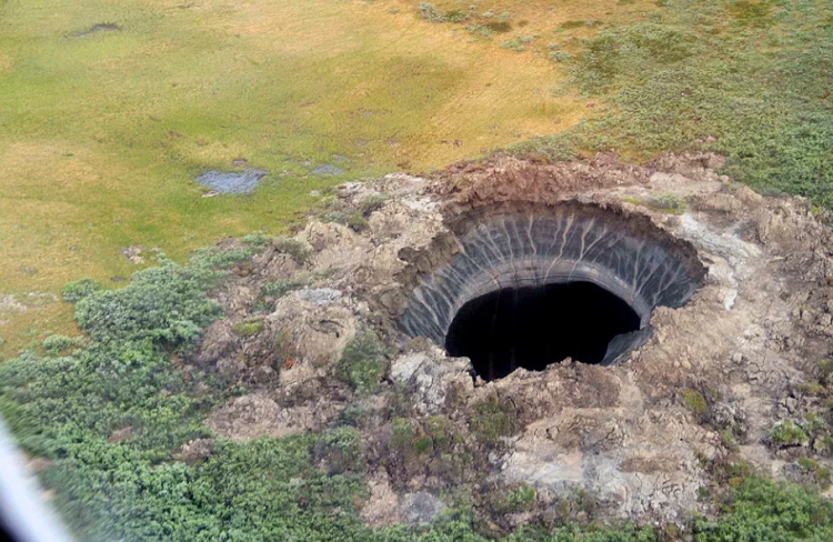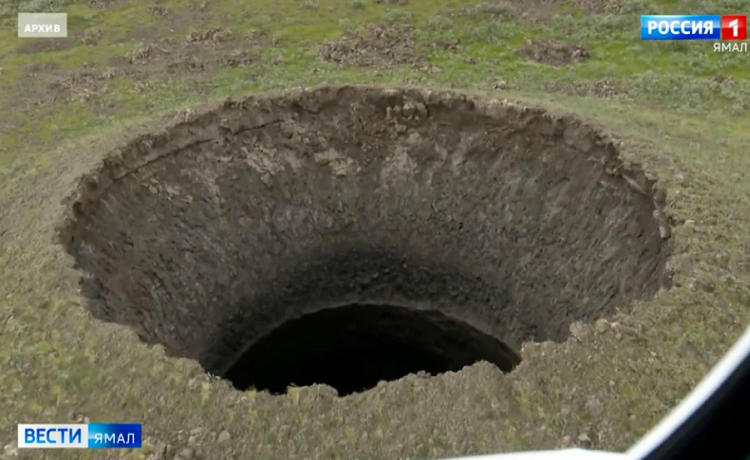 В російській Арктиці з'явився гіганський кратер у 50 метрів глибиною. Його виявили після масивного вибуху в тундрі. Науковці припустили, що вибух могло спричинити накопичення газу метану у вічній мерзлоті.