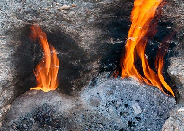 Полум'я, що горить понад 100 років, виходить із землі та підживлюється природним газом. Дивовижне геологічне явище призвело до того, що в індійському храмі Джвала Джі з'явився "вічний вогонь". Якщо відкинути всі місцеві легенди та фантастичні припущення, довговічність полум'я пояснюється наявністю метану, завдяки якому вогонь не згасає.