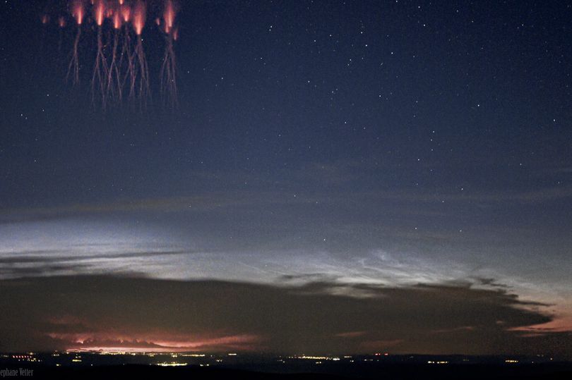 Але "феєрверки на зображенні - це червоні спрайти - великі, але слабкі спалахи світла, які з'являються прямо над активною грозовою системою".