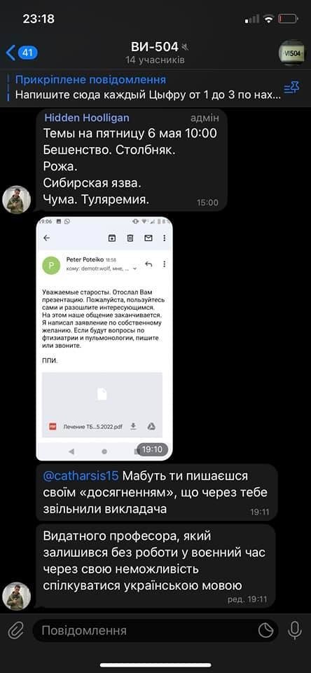 У свою чергу адміністрація університету "вирішила" конфлікт звільненням викладача, який відмовився вести лекції українською. Пояснень такого оперативного рішення від адміністрації не було, через що на Федоренко посипались погрози від одногрупників.