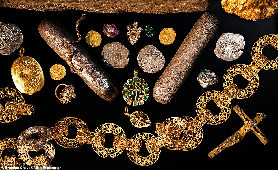Також було виявлено три золоті ланцюги та чотири підвіски, які носили члени священного ордена Сантьяго, релігійної групи лицарів, дуже активних в іспанській морській торгівлі.