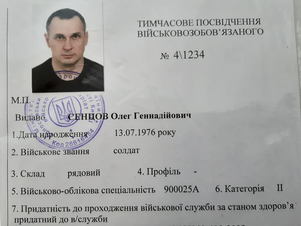 "Так як я зараз майже киянин, то пішов і став на військовий облік. Тепер я солдат запасу і якщо що..." - написав колишній в'язень Кремля.