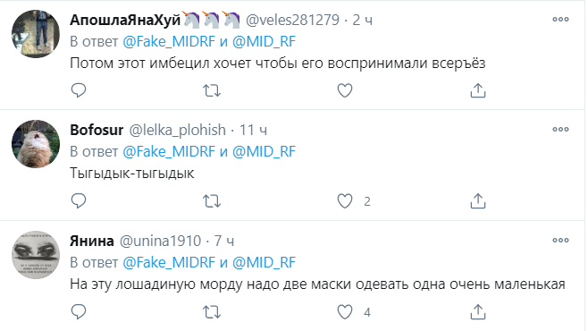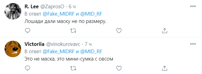 Міністр закордонних справ РФ Сергій Лавров, який раніше назвав офіційну позицію Росії в конфлікті в Нагірному Карабасі, став героєм жартів в мережі через дивний спосіб носіння захисної маски від коронавірусу. Користувачі мережі вкотре порівняли його зовнішність з конем, провівши візуальні асоціації.
