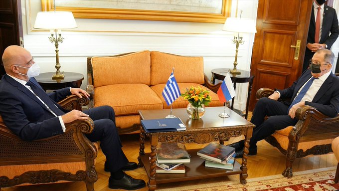 Відповідне фото з зустрічі Лаврова з представником Греції опубліковано в Twitter Мид Роисси.