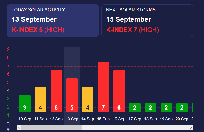 У четвер, 14 вересня, магнітосфера Землі буде у збудженому стані, але при цьому суттєвих магнітних бур не очікується.
