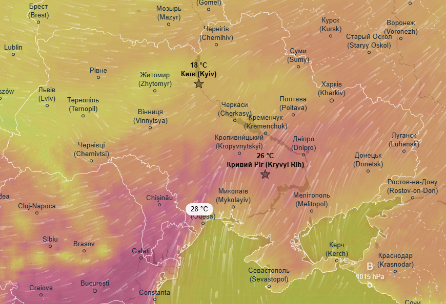 Про це йдеться в прогнозі метеоресурсу Ventusky.