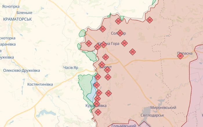 На Бахмутському напрямку окупанти безуспішно нападали в районах Кліщіївки та Білої Гори Донеччини. Вони завдали авіаційного удару в районі Благодатного. Від ворожих артилерійських обстрілів постраждали понад 15 населених пунктів, зокрема Міньківка, Маркове, Часів Яр, Предтечине, Диліївка, Торецьк на Донеччині.