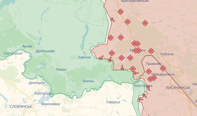 На Лиманському напрямку ворог завдав авіаційних ударів в районах Білогорівки Луганщини та Серебрянки, Сіверська, Спірного й Веселого Донеччини. Ворожих артилерійських обстрілів зазнали понад 10 населених пунктів, серед них: