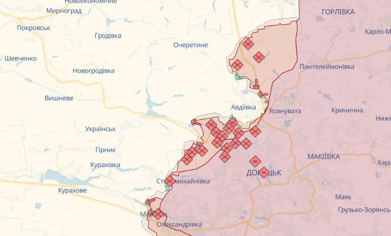 На Авдіївському напрямку ЗСУ продовжують стримувати наступ загарбників під щільним вогнем авіації та артилерії ворога в районі Авдіївки Донеччини. Загарбники завдали авіаційного удару в районі Авдіївки. Артилерійських обстрілів зазнали понад 10 населених пунктів, зокрема Авдіївка, Сєверне, Нетайлове, Невельське, Карлівка Донеччини.