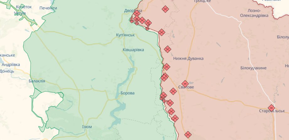 На Сіверському та Слобожанському напрямках противник продовжує утримувати угруповання військ прикриття державного кордону, проводить активну диверсійну діяльність у прикордонних районах з метою недопущення перекидання наших військ на загрозливі напрямки, нарощує щільність мінно-вибухових загороджень вздовж державного кордону в Бєлгородській області.