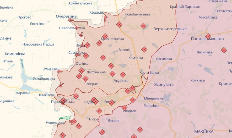 На Авдіївському напрямку відбито 16 атак в районах населених пунктів Очеретине, Бердичі, Уманське, Яснобродівка, Нетайлове та Первомайське Донецької області.
