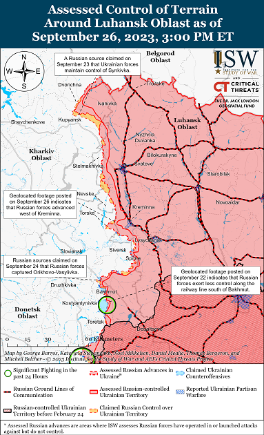 Російські джерела стверджували, що російські війська здійснили наземні атаки вздовж лінії Куп"янськ-Сватове-Кремінна 26 вересня, але не зробили жодного підтвердженого просування. В Генштабі ЗСУ повідомили, що російські війська не проводили штурмів на Куп"янському та Лиманському напрямках.