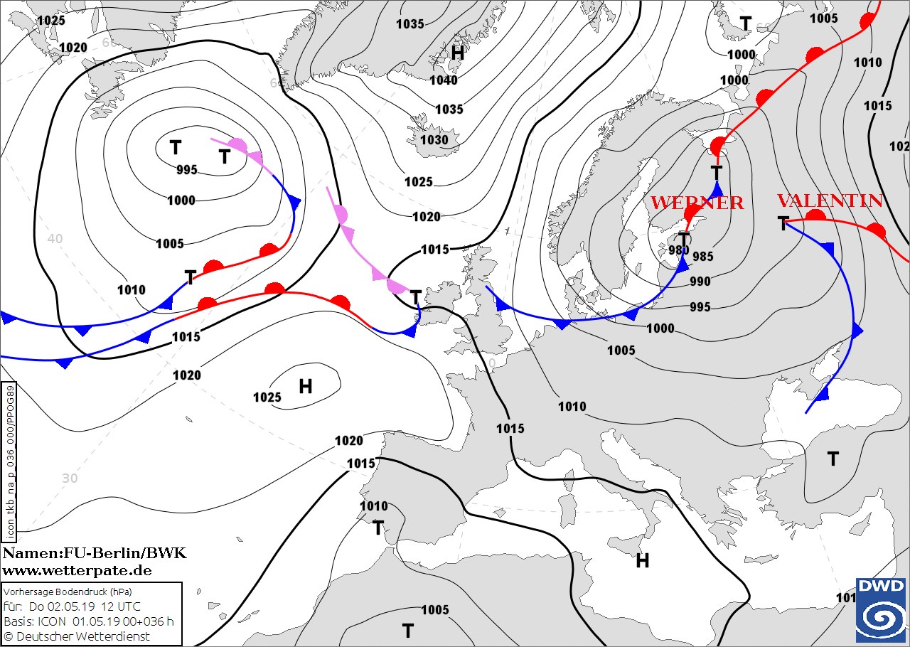 "Циклон Valentin (на супутниковому фото) у четвер залишить територію України. Він за цю добу стане вже стареньким і прихилить завтра свою сиву голівоньку до іншого, молодого циклона Werner, який гулятиме поблизу Скандинавії (на карті). Інакше кажучи, увіллється в іншу циклонічну систему. Проте його атмосферні фронти завтра нас ще зачіпатимуть.