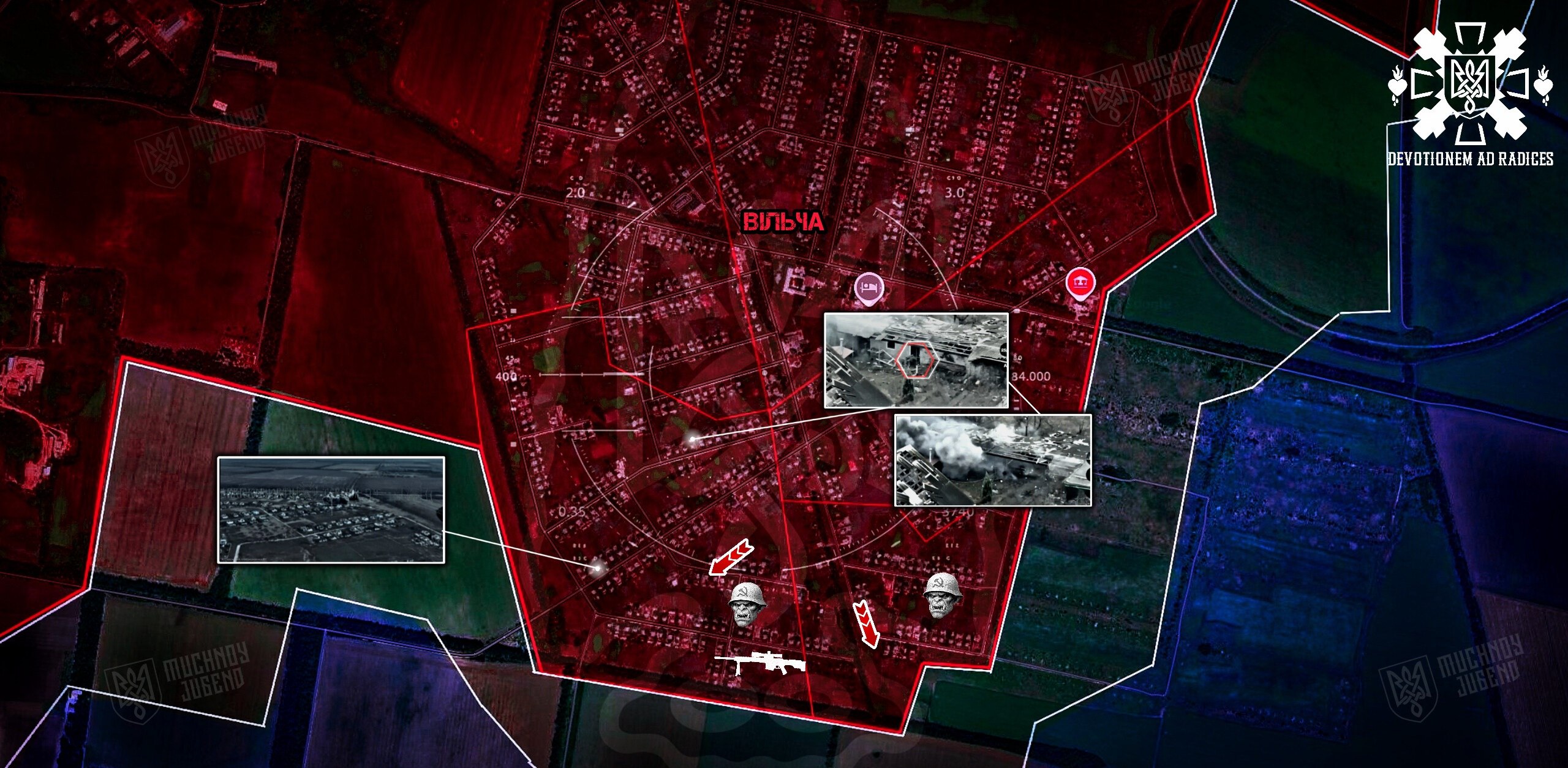 "Вовчанський напрямок: За наявними ознаками, н.п. Вільча фактично відколовся! На момент останніх боїв там утримувався лише край південної частини, але ворог цю ділянку системно перемелював, працювали як ФАБи так і FPV-дрони. Позиції просто вибивали під нуль, не залишаючи можливості для стабільного утримання", — йдеться у дописі.
