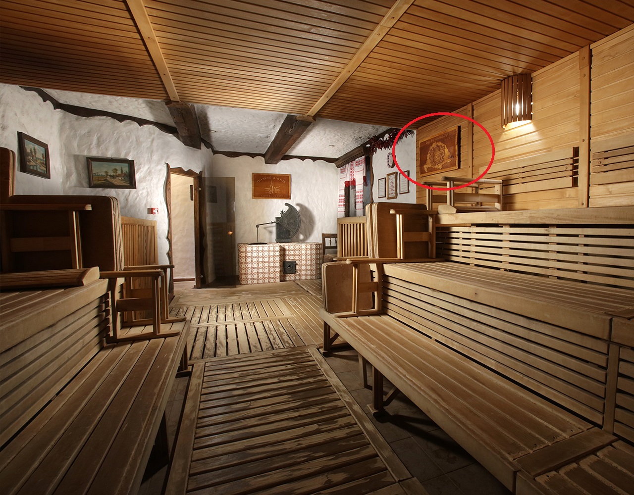 В інтер"єрі оздоровчого комплексу не гребують використовувати державний герб Угорщини та герб Косоньської (Косонь – угорська, нині офіційна назва колишнього села Косино) громади, яка у вищеокресленому символічному контексті є, вочевидь, частиною нинішньої Угорщини та Угорської імперії, а не України.