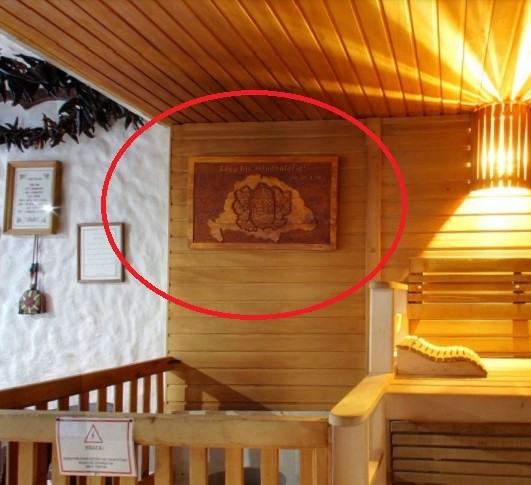 Як з"ясувалось, приміщення і територія оздоровчого комплексу всіяні імперськими символами так званої "Великої Угорщини" (Угорської імперії). Саме про її відновлення в межах колишніх кордонів (куди входила і територія сучасного Закарпаття) мріють угорські ревізіоністи разом з Віктором Орбаном.
