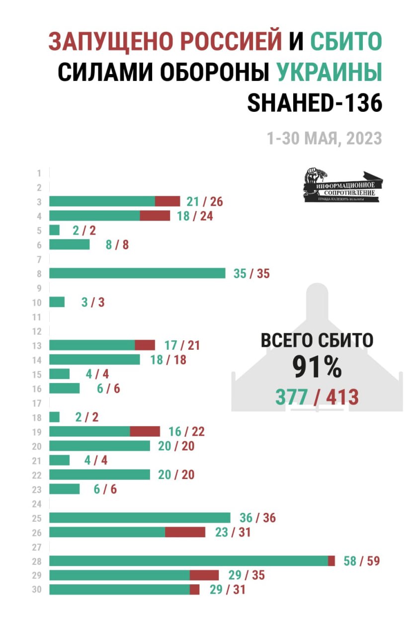 Про це написав військово-політичний оглядач групи "Інформаційний спротив" Олександр Коваленко, навівши номенклатуру випущених та збитих боєприпасів.