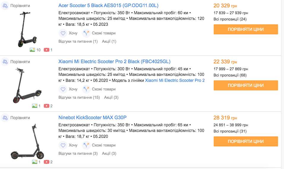 Сьогодні вартість електросамокатів стартує від 12 тисяч грн за прості моделі – до 95 тис. грн за найцікавіші та "найнавороченіші".