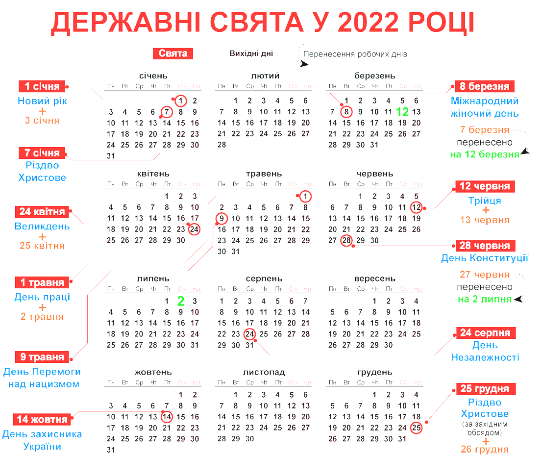 Упродовж 2022 року буде 107 вихідних днів, тоді як у 2021 році було 115-ть.