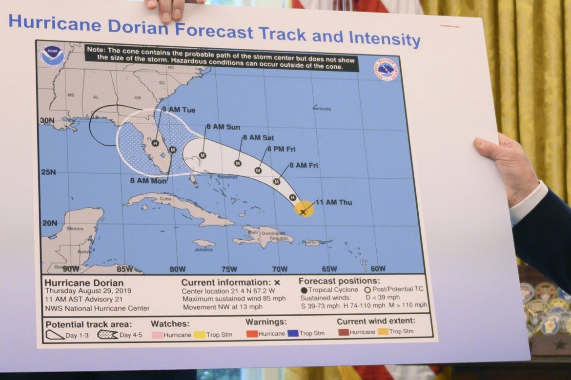 За словами науковиці, 1 вересня 2019 року, коли ураган Доріан підходив до США, Трамп вирішив попередити людей. У Twitter він героїчно написав, що небезпека чекає Флориду, Південну Кароліну, Північну Кароліну, Джорджію та Алабаму. Проблема була лише в тому, що Алабамі тоді взагалі нічого не загрожувало. Синоптики заперечили прогноз Трампа.