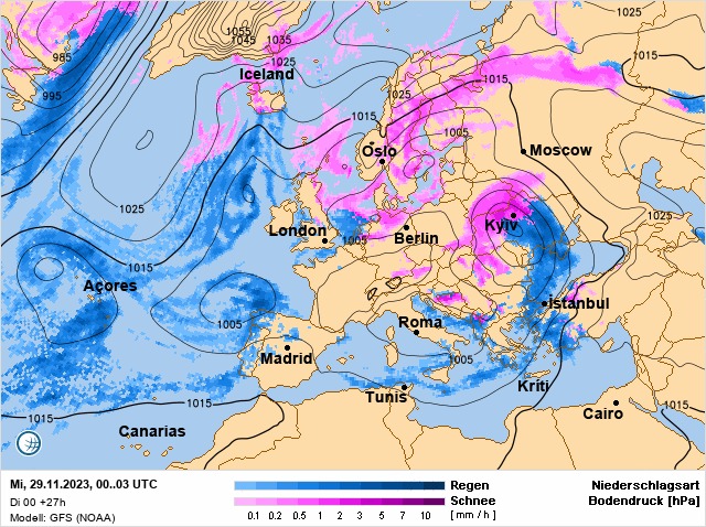 У середу, 29 листопада, в Україну прийде черговий циклон: у більшості областей очікується ускладнення погодних умов - сніг, мокрий сніг, налипання мокрого снігу та дощі.