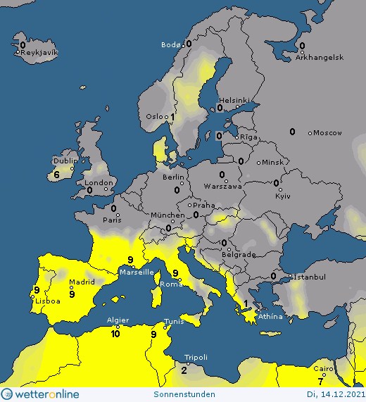 14 грудня сонце ненадовго виходитиме з-за хмар хіба що на Закарпатті. Подекуди можливі невеликі опади у вигляді мокрого снігу, туман. Невеликий сніг у вівторок можливий у західних областях. Температура повітря в Україні коливатиметься від 2 морозу до 3 тепла. Напрямок вітру переважно північний, помірний.
