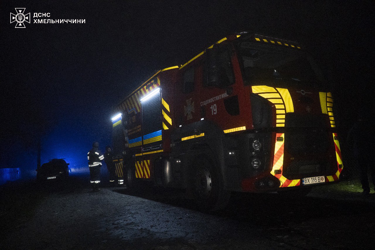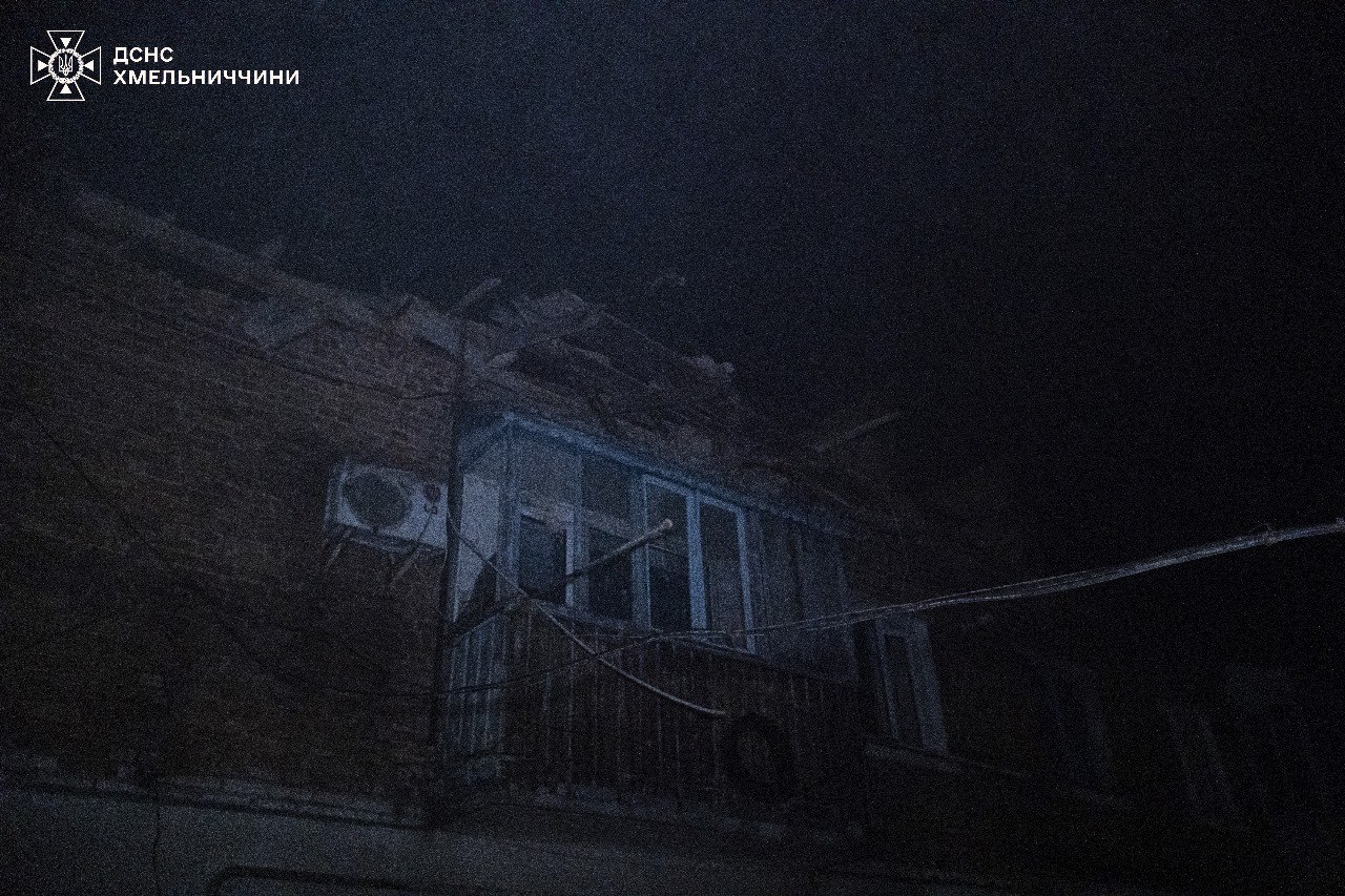 У Хмельницькій області через нічну російську атаку дронами уламки пошкодили двоповерховий будинок та спричинили пожежу.