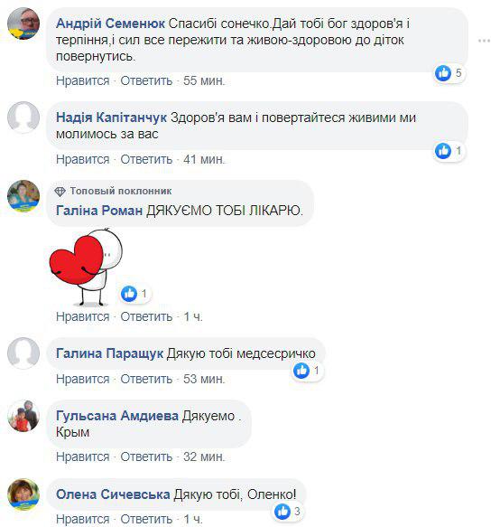 Користувачі в коментарях під публікацією про медика Олену виразили їй щиру подяку за роботу.
