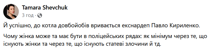 Дехто повідомив, що Кириленко за освітою педагог, і написали риторичне запитання, чому ж сам не пішов у поліцію.