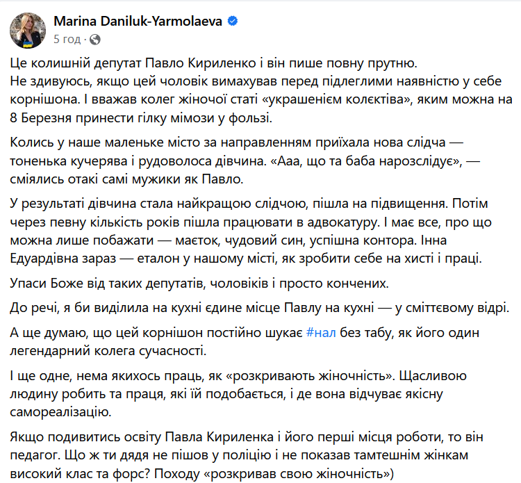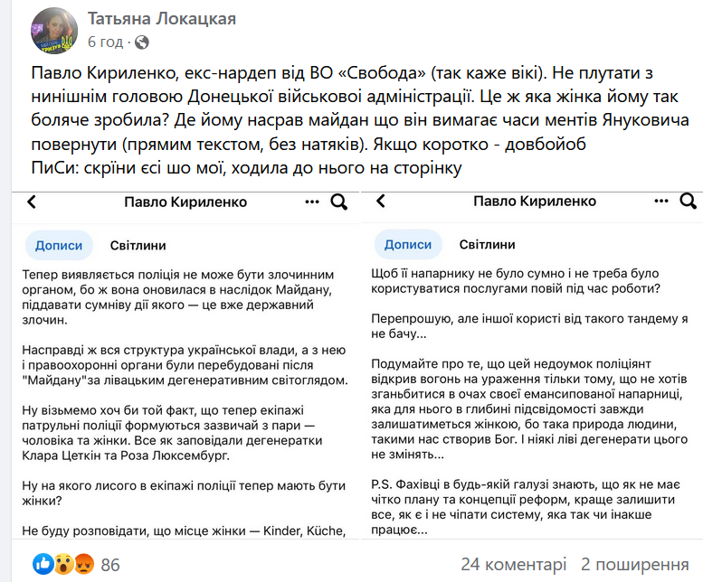 У мережі спалахнув черговий скандал щодо смертельної стрілянини у Дніпрі. Відзначився колишній народний депутат Павло Кириленко, який порівняв жінок-поліцейських з повіями.