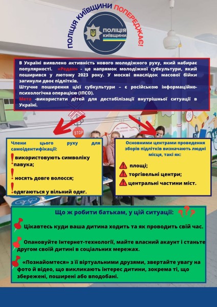 Поліція Київщини також закликала батьків захистити дітей від ворожих проявів підозрілих субкультур. Там детальніше розповіли про те, що собою являє "ЧВК Редан".