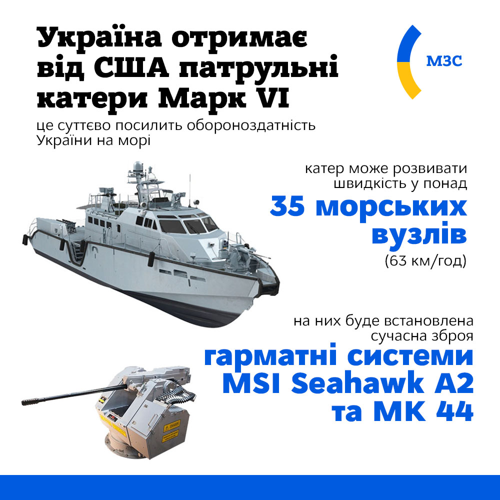 США схвалили продаж Україні до 16 патрульних катерів Марк VI, а також необхідного супутнього обладнання до них на загальну суму 600 млн доларів.