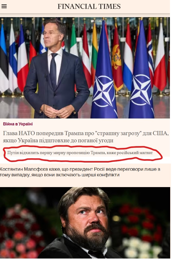 "Це ми все і так знаємо, тому не буду давати той текст. Але дам повністю другий – про заяву путінського олігарха Малофєєва щодо того, як на його думку, будуть йти торги Трампа з Путіним. Там за великим мало що нового – лякання ядрьоной матрьоной, вижжена зємля, вимога поділити світ на геополітичні зони. Але є дещо нове. Малафєєв поставив вимогою для початку особистих "тьорок" Трампа і Путіна заборону бити атакамсами по Росії і… усунення Зеленського від влади. Тільки після цього зустріч і геошахматка", - написав Ніколов.
