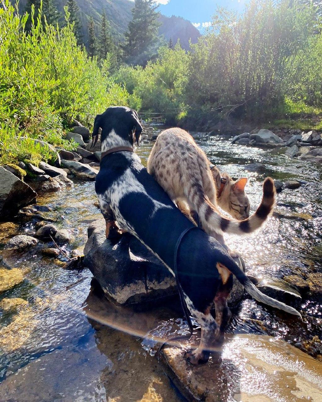 У мережі захоплюються дивовижною дружбою між собакою породи такса і бенгальським котом, які живуть в штаті Колорадо (США).