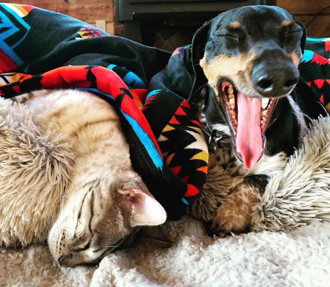 Як виявилося, господиня не помилилася з вибором нового друга для свого вихованця. Такса настільки здружилася з котом, що тепер буквально з ним не розлучається.
