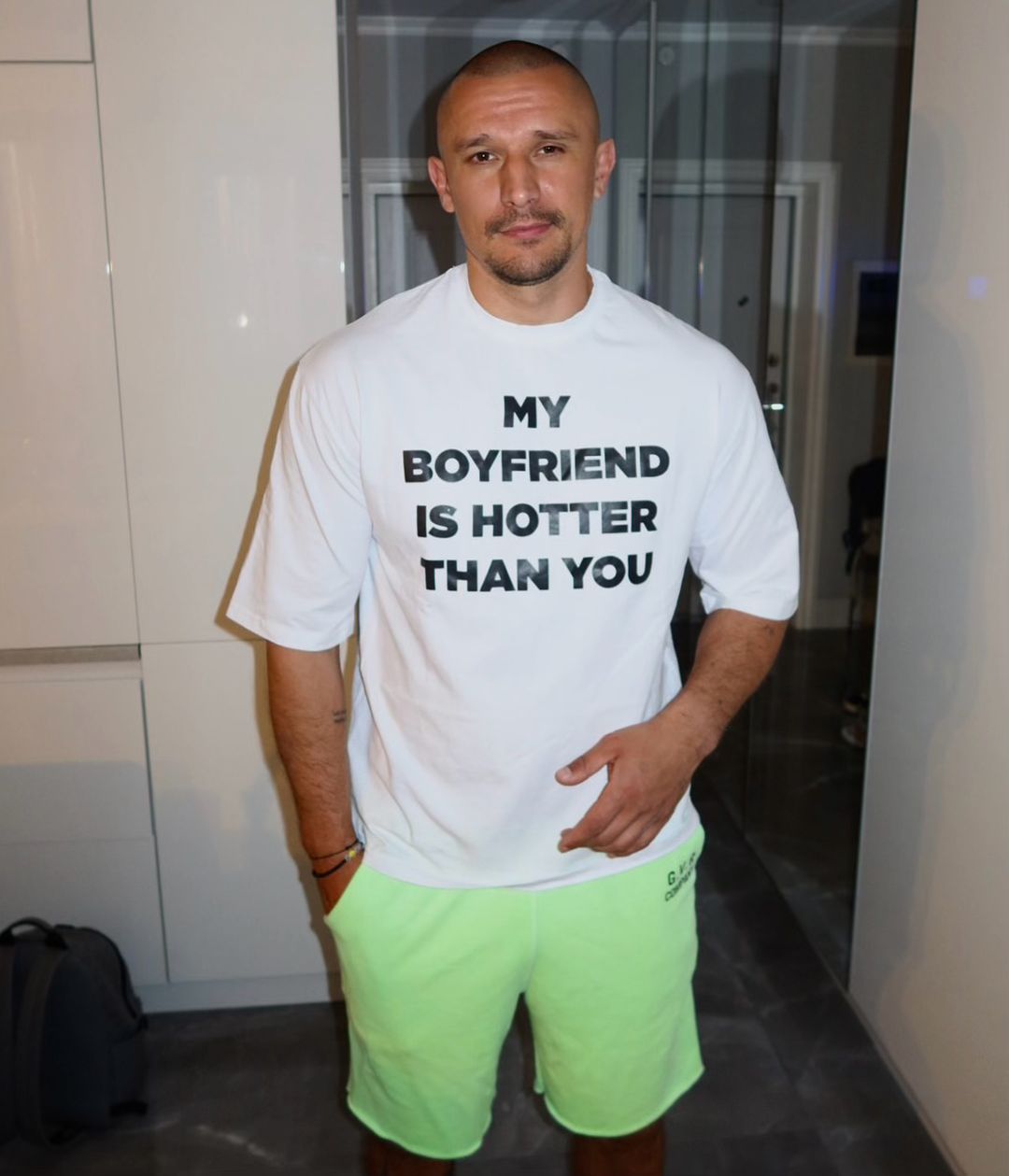 При цьому сам Цимбалюк вдягнув провокаційну футболку з написом "Мій хлопець гарячіший, ніж ти" – натяк на нетрадиційну орієнтацію самого Цимбалюка.