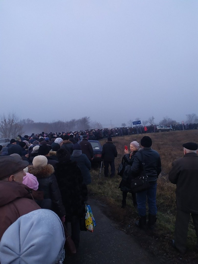 Біля одного з пунктів пропуску на лінії розмежування на Донбасі, в районі Станиці Луганської, скупчуються величезні черги людей.