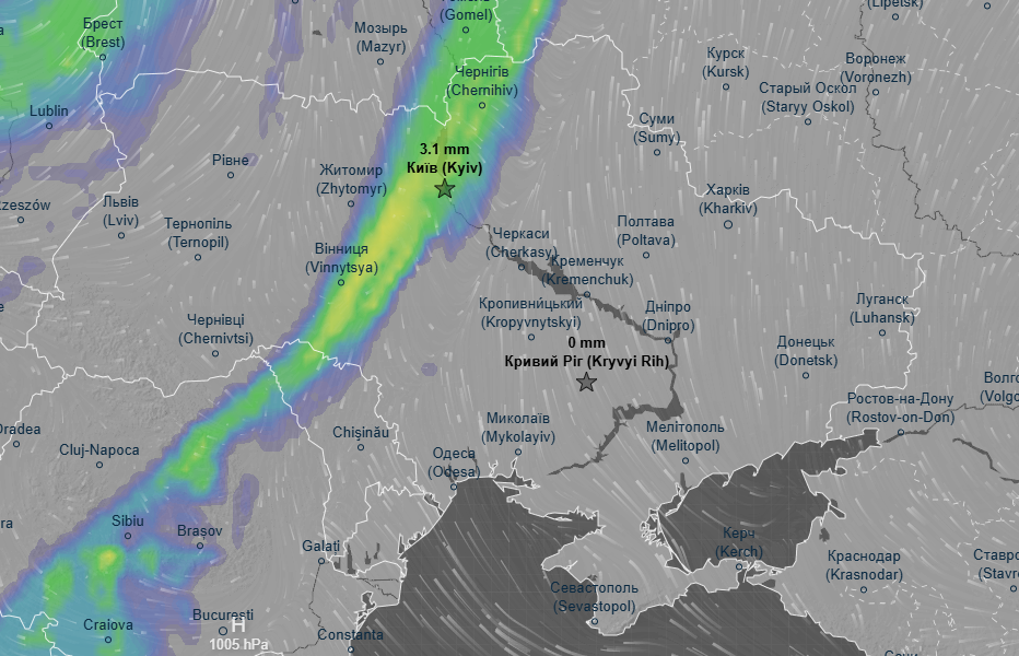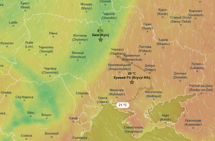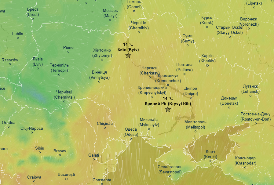 Про це йдеться в прогнозі метеоресурсу Ventusky.