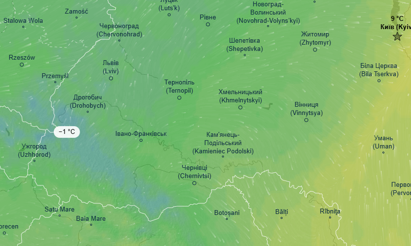 Тим часом в прикарпатському регіоні очікується справжня зимова погода - лише +2 - 0 градусів. В Карпатах вдарять морози до -1 градуса.