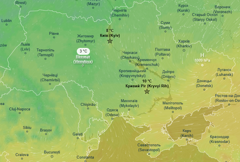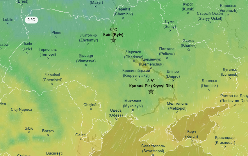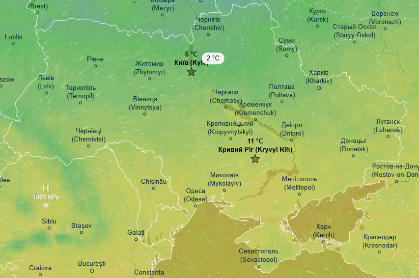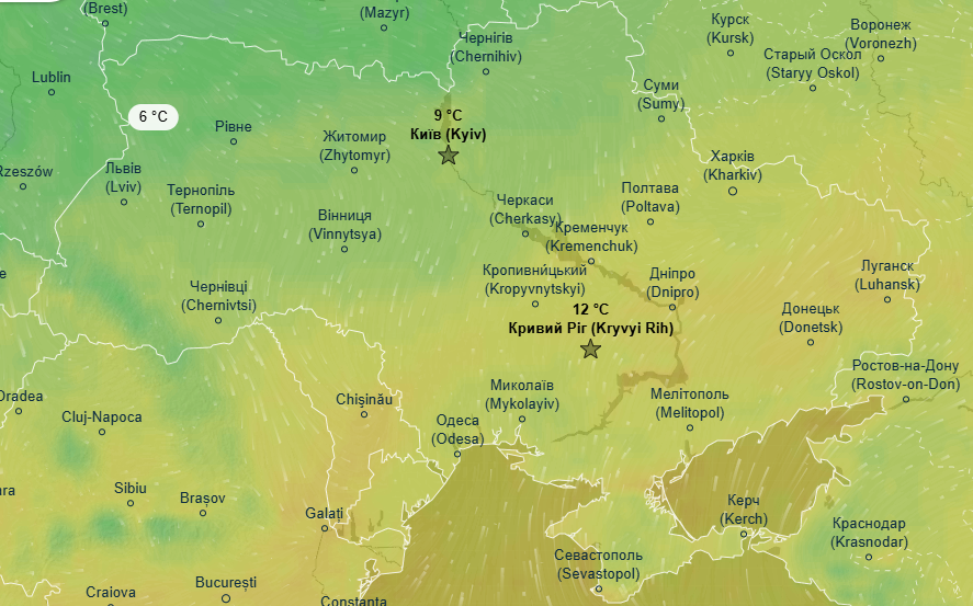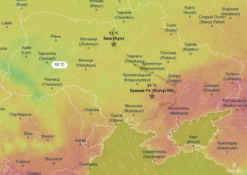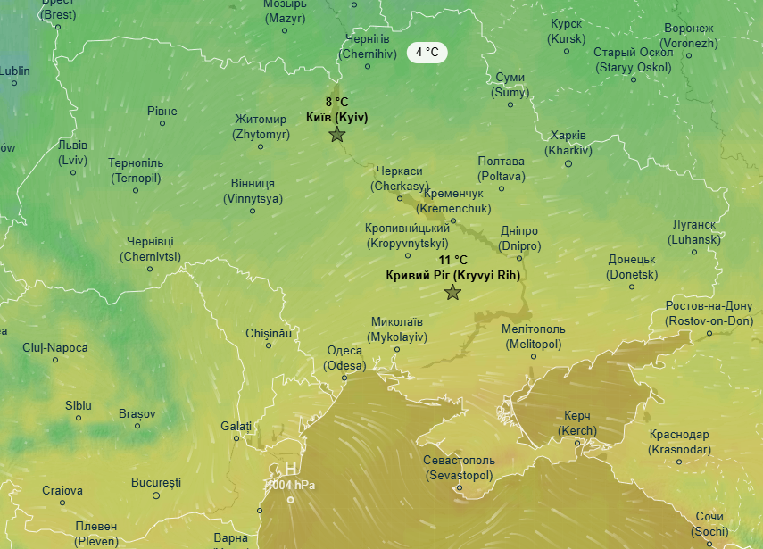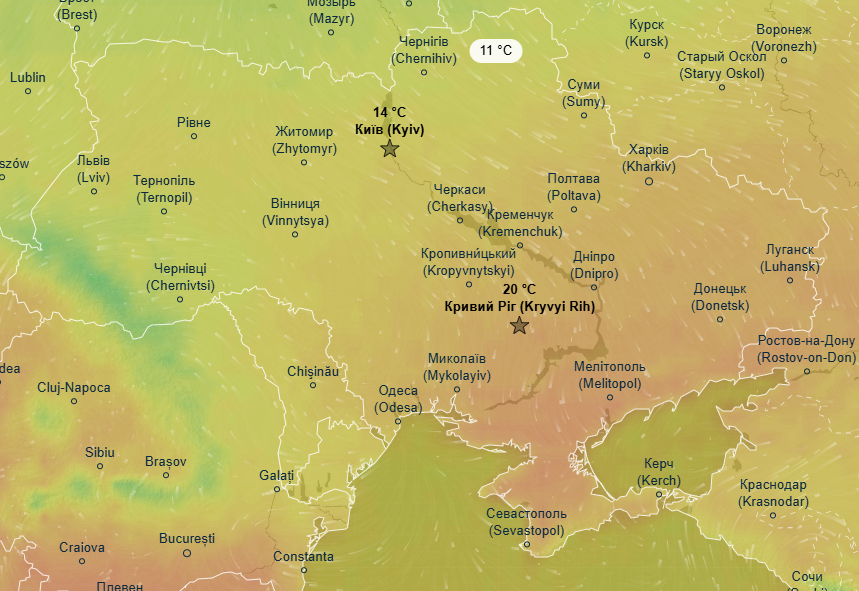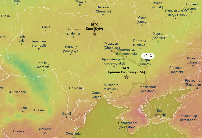 Про це йдеться в прогнозі метеоресурсу Ventusky.