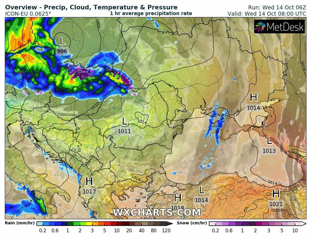 В середу, 14 жовня, в Карпатах внаслідок проходження активного циклону температура повітря на високогір"ї впала нижче 0°С, а також випав сніг до 5 см.