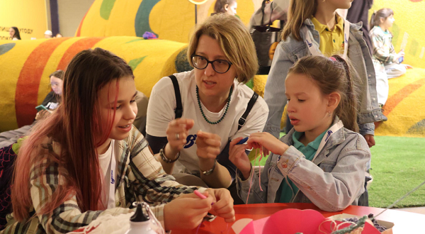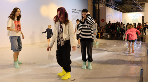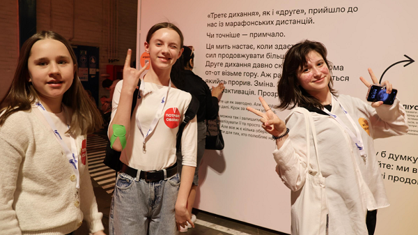Після смачного перекусу та вручення подарунків, діти побували на інтерактивній виставці "Третє дихання". Це особливий простір на Подолі – 4000 кв. м емоцій, VR-зон, інтерактивів, інсталяцій. Тут діти слухали, пробували, відчували і навіть стрибали по калюжах.