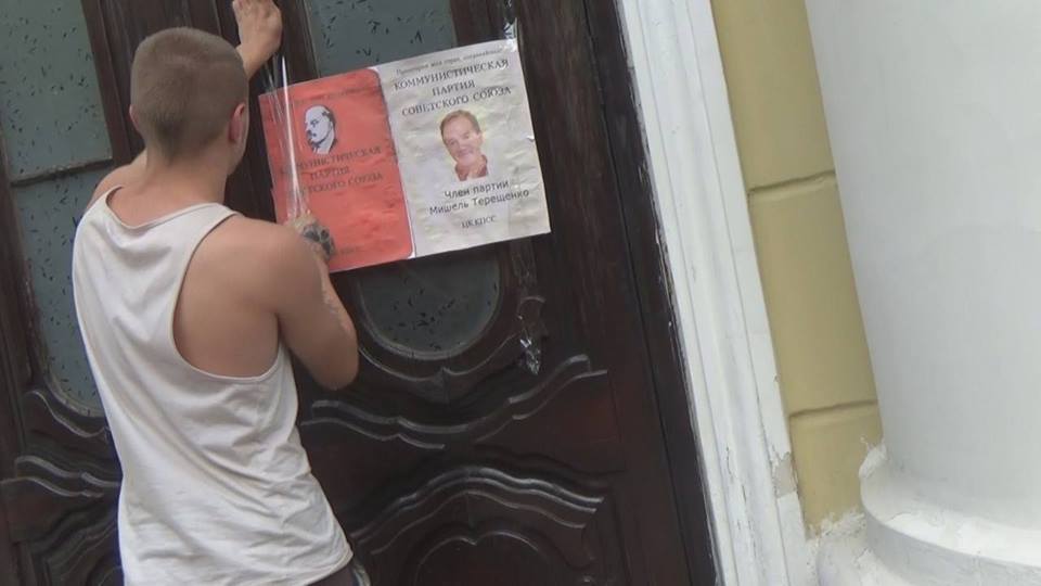Студенти міста Глухова вручили меру Мішелю Терещенко партквиток КПРС через скасування дискотеки в День міста за надуманим приводом.