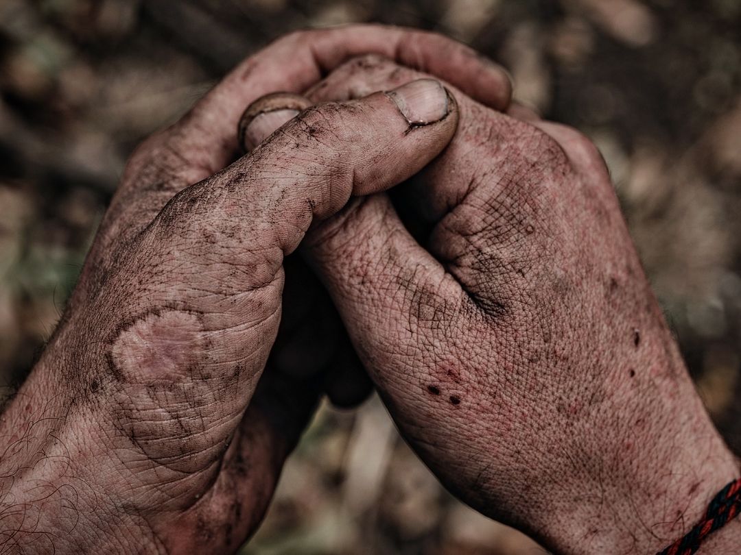"Руки піхотинця, який щойно вийшов з позицій. Ротації відбуваються дуже рідко та з великою небезпекою через те, що майже всі логістичні артерії контролюються ворожими фпв дронами", - написав Ліберов.
